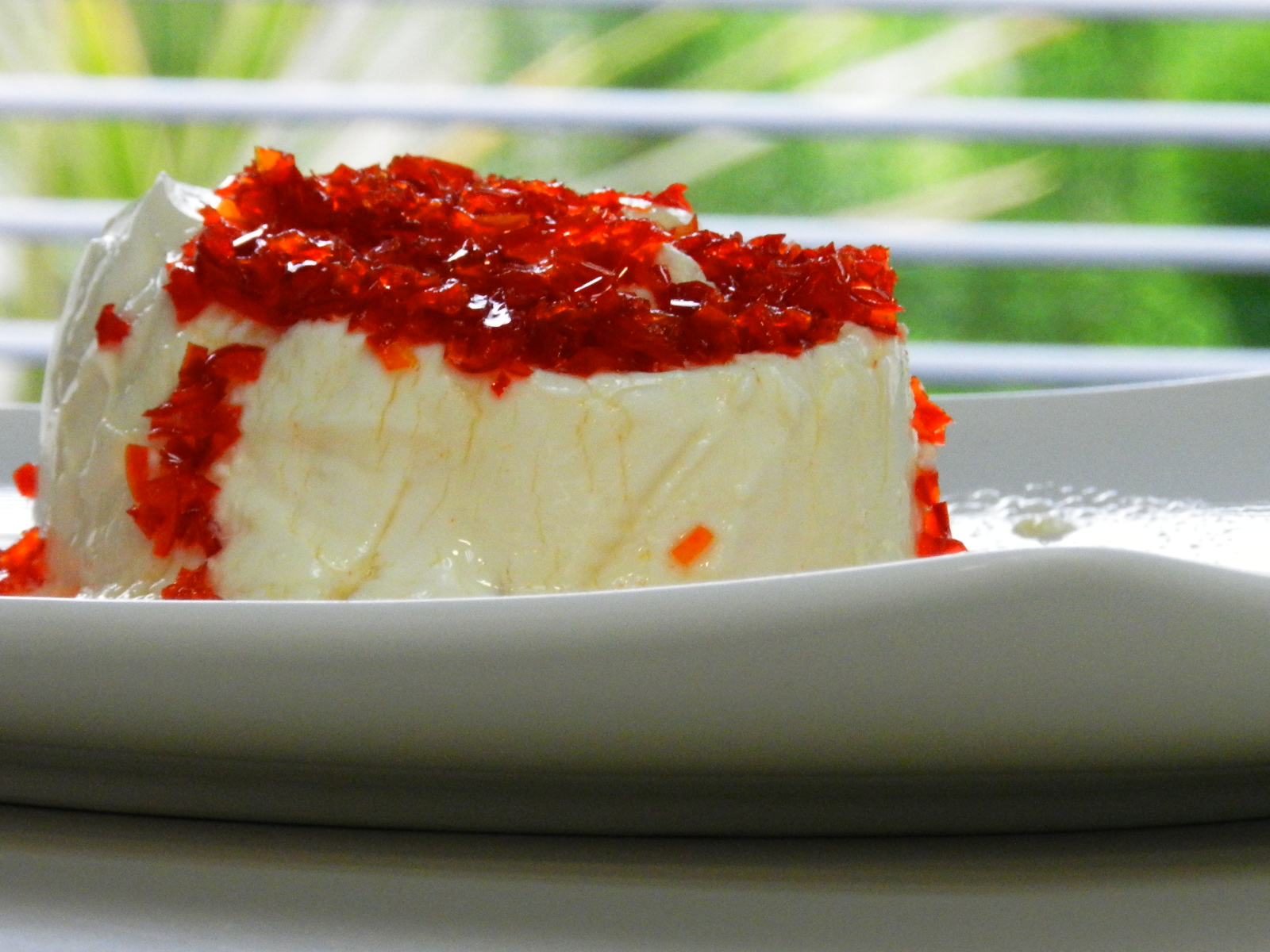 Pasapalo de queso crema con almíbar de pimientos rojos