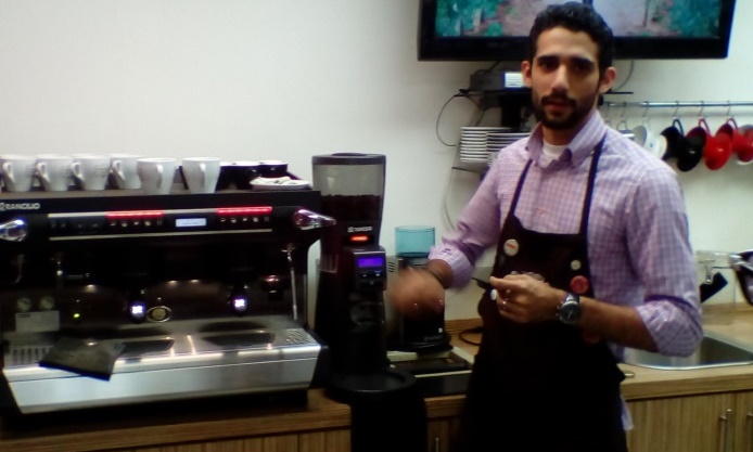 Desde mi posición hago la llamada a Pietro, pero me atiende …Carlos… un tal Carlos que me arruina el speech telefónico posponiendo mi ya improvisado encuentro para otro día. Esquivo la brecha y empeñada le explico que estoy aquí, en el sitio. Carlos se convierte en ángel y me dice, ¡pues si estas aquí sube! Seguí por el pasillo atraída por el aroma, como la mejor y única señal de ir por buen camino, subo por las escaleras al segundo piso. Los baristas y Carlos, (ahora el angel barista) conversan en la entrada y me invitan a pasar.